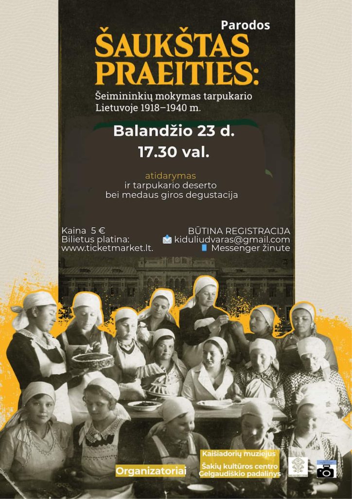 Parodos „Šaukštas praeities: šeimininkių mokymas tarpukario Lietuvoje 1918-1940 m.” atidarymas kiduliai.lt · Publikuota 2026-04-09 · Atnaujinta 2026-04-09 Facebook0Tweet0Pin0Print0Email0 Parodos „Šaukštas praeities: šeimininkių mokymas tarpukario Lietuvoje 1918-1940 m.“ atidarymas bei tarpukario deserto ir medaus giros degustacija. Maloniai kviečiame!