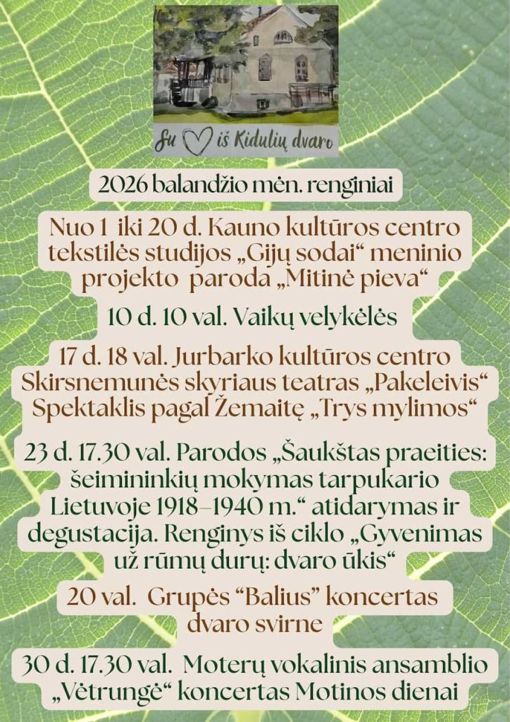 Balandžio mėnesio renginiai Kidulių dvare kiduliai.lt · Publikuota 2026-04-09 · Atnaujinta 2026-04-10 Facebook0Tweet0Pin0Print0Email0