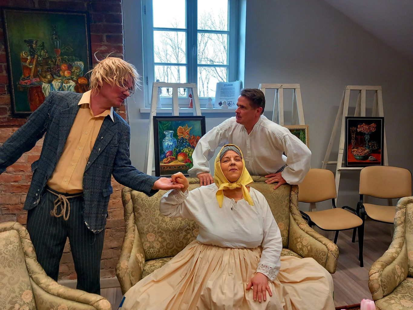Svečiai iš kaimyninio krašto atvyko ne tuščiomis, o su puikia dovana žiūrovams – spektakliu pagal Žemaitė kūrinį „Trys mylimos“. Salėje susirinkę žiūrovai nuo pirmųjų akimirkų buvo įtraukti į nuotaikingus Liudviko, motinos, Barbelės, Domicelės, Petronėlės ir Kozerio nuotykius.